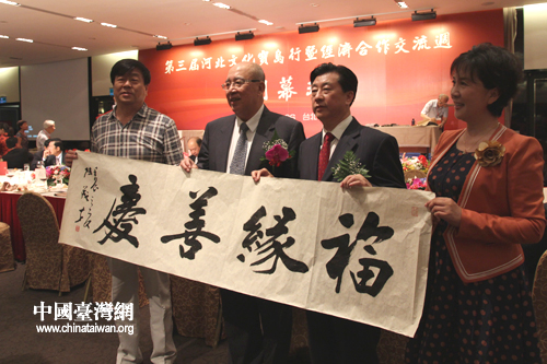 河北省书法家现场挥毫泼墨,将墨宝赠送给吴伯雄。(中国台湾网 马迪 摄)
