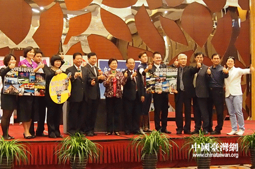 2012年北京旅博会“台湾旅游推介会暨台湾之夜”15日晚在北京隆重举行。(中国台湾网 陈叶群 摄) 中国台湾网6月16日北京消息 由台湾中华两岸旅游产学发展协会主办的,2012年北京旅博会“台湾旅游推介会暨台湾之夜”15日晚在北京隆重举行,来自大陆部分省市旅游局领导、旅游业界人士和台北、台南、高雄等台湾岛内旅游业者,及也门等国际友人欢聚一堂,品台湾地道小吃,交换观光资讯,挖掘旅游商机,探讨两岸旅游市场的新发展。 台湾中华两岸旅游产学发展协会理事长沈冠亚特意向大陆旅游业者致以万分谢意。她介绍说今晚所品台湾美食的食材皆是协会特意从台湾带来,由台湾主厨烹饪研制而成的,希望来宾细细品味台湾美食,并祝愿今晚美食能给大家带来更幸福的未来、更光明的未来、更赚钱的未来。