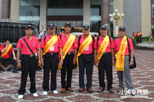 来自台湾清水镇朝兴宫的6位委员代表合影留念。(中国台湾网 张洁 摄)