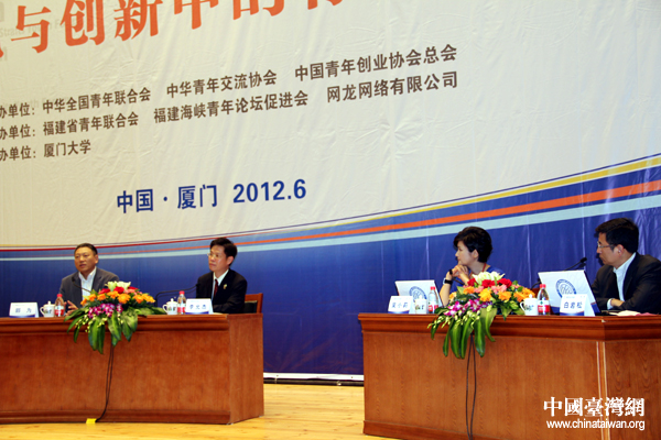 两位主持人和两位嘉宾以问答形式展开讨论,机智对答,妙趣横生。(中国台湾网 芮益芳 摄)