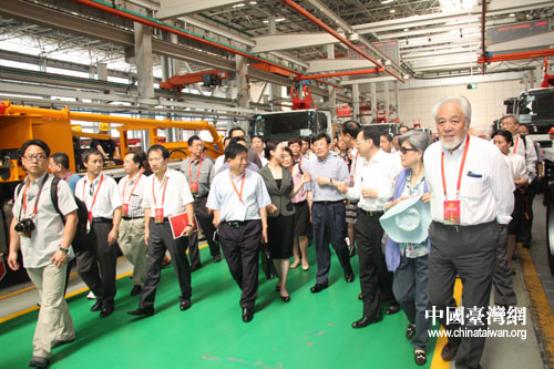 统促会参访团兴致勃勃地走进三一重工集团的生产车间。(中国台湾网 王君飞 摄)