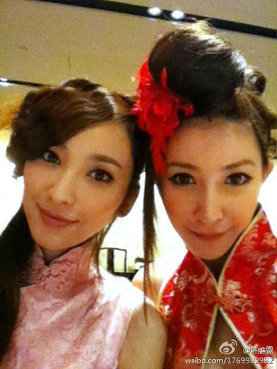 吴佩慈(左)、许维恩(右)姐妹撞脸。(图片来自新浪微博)