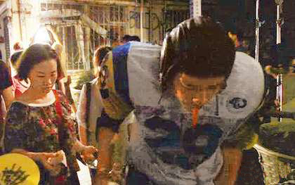 杨佑宁(右)因武行出手太重真的喷血,当场挂彩。图片来自台媒