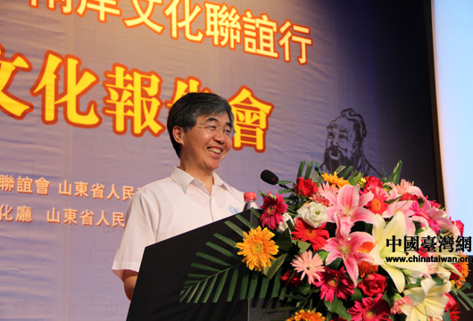 山东省委宣传部副部长、山东省文化厅党组书记徐向红主讲山东文化报告会。(中国台湾网 芮益芳 摄)