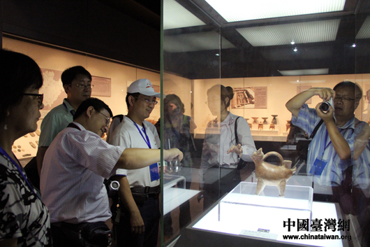 台湾嘉宾正在参观山东博物馆镇馆之宝——红陶兽形壶。(中国台湾网 芮益芳 摄) 第1页第2页第3页第4页第5页
