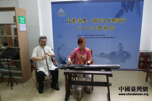 两岸文化交流笔会上,主办方特别请来古琴演奏家与箫演奏家在现场抚琴吟箫(中国台湾网 芜同 摄)