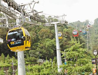 日月潭缆车昨天中午突然跳电,经启用备用电力,300名游客平安疏散下车。图片来自台媒