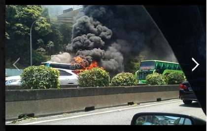 新北市政府消防局表示,约上午11点接报后,公路警察队通知,透过监视影像发现乘客已经疏散,10多名乘客奔逃,由接驳车接送离开。