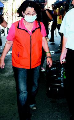 林益世母亲沈若兰昨天由律师陪同,拖着装有现金的大皮箱到特侦组接受侦讯。图片来自台媒