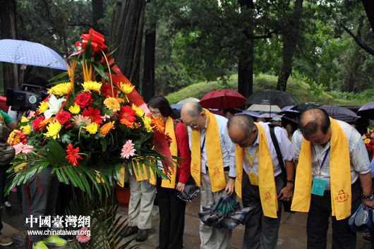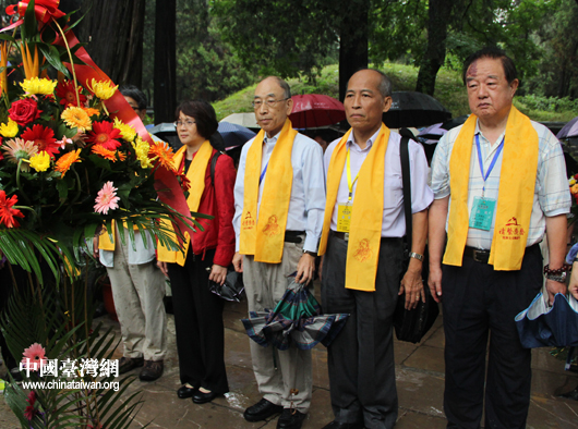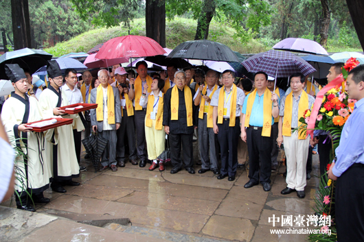 两岸文化界人士雨中祭拜孔子圣人。(中国台湾网 芮益芳 摄)