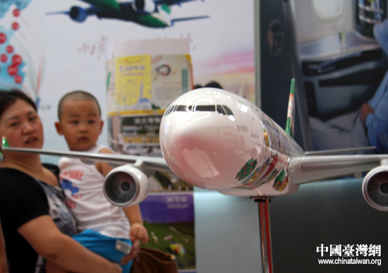 展位内的台湾长荣航空hello kitty机模型。(中国台湾网 王思羽 摄)