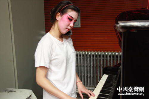 在后台弹钢琴的昆曲演员。(中国台湾网 孟雅诗 摄)