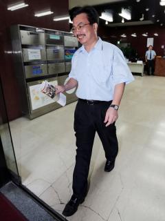 台检方特侦组检察官在7月6日及7日传唤陈君圣清点已烘干的现钞,迄今受潮现钞已全部烘干,今天是第3度传唤陈君圣到案清点,确认为1800万元。(中国台湾网 焦源源)