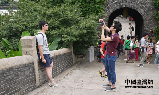 组长张壹翔为组员董柏廷拍照。(中国台湾网 李丹 摄)