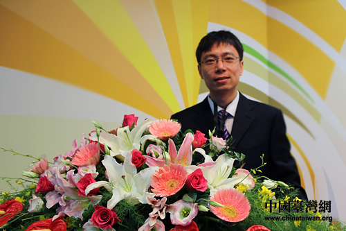 北京晨报主编施剑松作“第二届海峡两岸大学生网络商务创新应用大赛”推介。(中国台湾网 董子誉 摄)