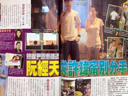 《壹周刊》指阮经天和许玮宁日前发生激烈争吵。(图片来自台媒)