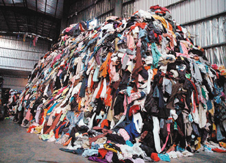 台湾一回收厂等待整理的旧衣堆得像座小山。(来源:台湾《联合晚报》)