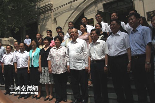 吴伯雄与遭遇车祸的旅游团团员合影。(中国台湾网 马迪 摄)