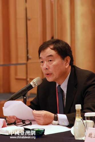 第八届两岸经贸文化论坛“扩大文教交流”专题研讨会29日上午继续举行。台湾联合报社长项国宁在会上做了题为《两岸新闻出版交流向前行》的发言。(中国台湾网 杨丽 摄)