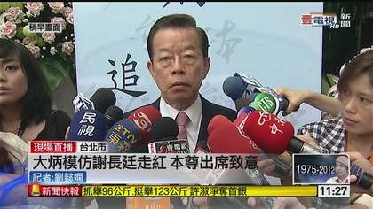 谢长廷今日专程从高雄到台北醒吾大楼,参加大炳的告别式。他说,大炳是一位才华洋溢的年轻人,带给别人欢乐,却无法解决自己的烦恼,“他的逝去,让我感伤良久,愿他一路好走”。