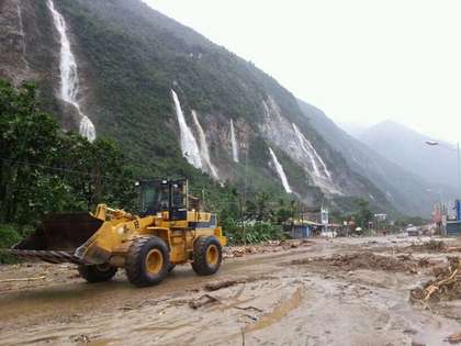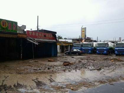 泥流冲刷至路面及多处民宅。图片来自台媒