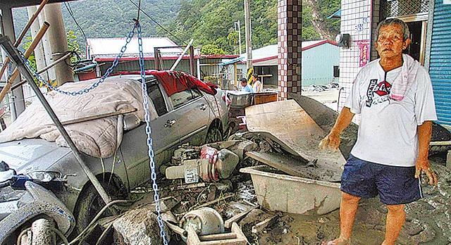 和中部落灾民林汉吉回到土石掩埋的家园,庆幸和家人跑得快,逃过一劫。(图片来自台媒)