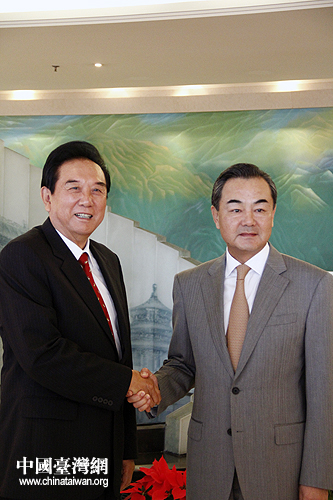 8日上午,中共中央台办、国务院台办主任王毅在首都机场为启程前往台北参加两岸两会领导人第八次会谈的海协会会长陈云林送行。 (中国台湾网 杨丽 摄)