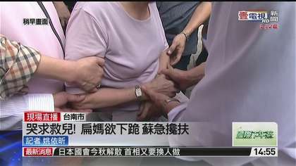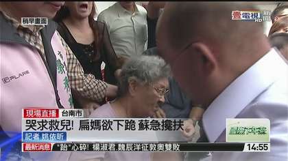 陈水扁母亲向苏贞昌下跪,求他救陈水扁。来源:台湾媒体