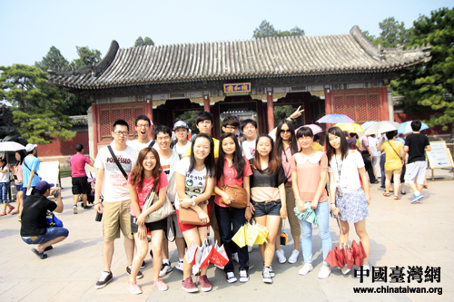 在大陆高校志愿者的陪同下,台湾青年学生交流团在北京参观游览。图为两岸学子在颐和园合影留念。(中国台湾网 吴晓寒 摄)