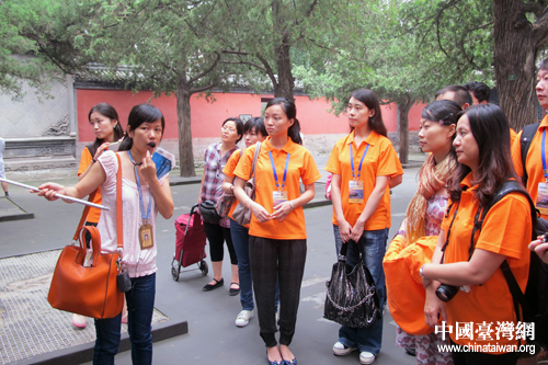 颐和园中,导游为大家讲解景点的相关知识。(中国台湾网 张洁 摄)