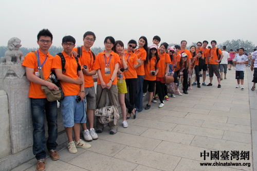 十七孔桥上,同学们凭“栏”一望。(中国台湾网 张洁 摄)