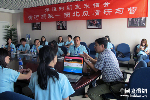 中央民族大学严庆教授与两岸学子进行热烈的交流探讨。(中国台湾网 张洁 摄)