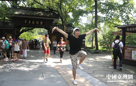 来自台北大学的林欣翰飞来峰里耍宝搞怪。(中国台湾网 孟雅诗 摄) 第1页第2页第3页第4页