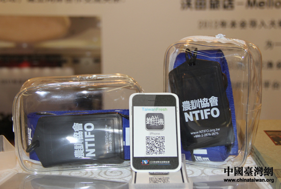 台湾农训协会精心制作的“抢鲜机”宣传卡,只需用手机扫描二维码,即可轻松下载软件。(中国台湾网 王思羽 摄)