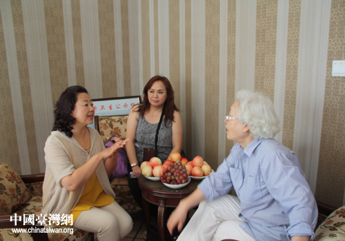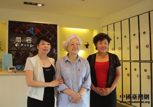 在丽容会所,会所总经理邹丽云(左)、台湾女企业家协会创会理事长马爱珍(中)、宁夏女企业家协会秘书长李彩虹(右)合影留念。(中国台湾网 李瑞艳 摄)
