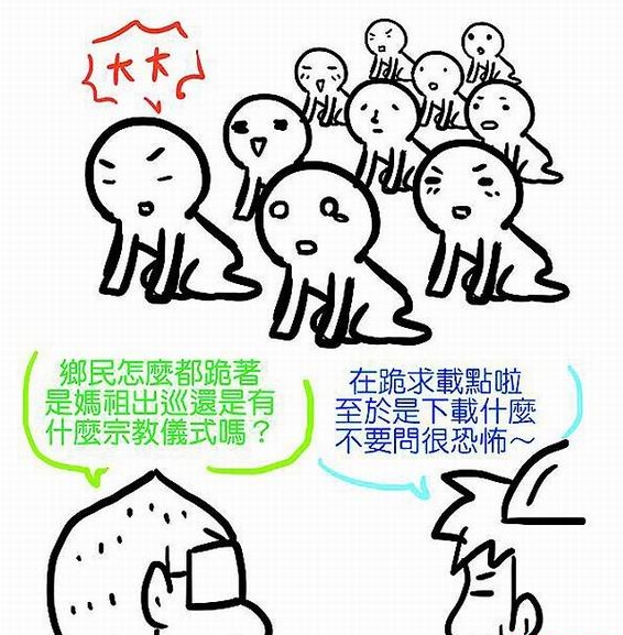 台湾插画家“海豚男”将乡民“跪求”艳照下载点现象画成漫画。来源:台湾媒体