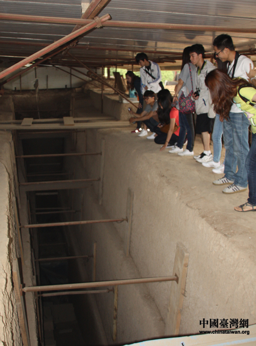 面对深不见底的墓地,同学们纷纷提出疑问。(中国台湾网 黄艳艳 摄)