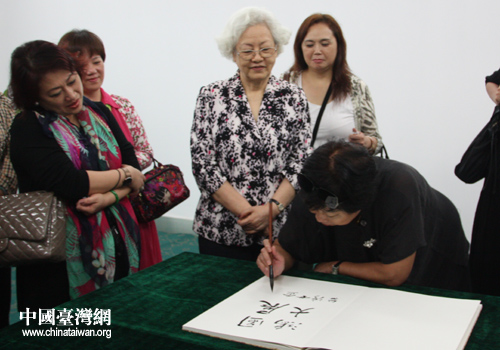 参访团一行在留言簿上留言。(中国台湾网 李瑞艳 摄)