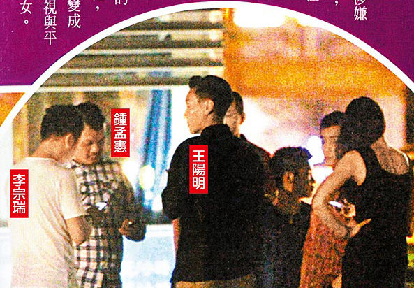 昨台媒报道李宗瑞逃亡前10天,曾与艺人王阳明、艺人刘香慈的前任绯闻男友钟孟宪等在夜店外谈话。(图片来自台媒)