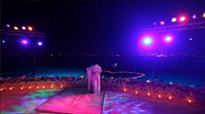 中国台湾网8月28日消息 据台湾媒体报道,近来网络疯传一段浪漫求婚影片,马来西亚富商刘德祖在影片中置身迪拜知名的亚特兰提斯饭店(Atlantis Hotel)私人沙滩,为女主角萧亚轩(ELVA)献上浪漫烛光晚餐求婚,过程中还请人现场奏乐、施放灿烂烟火,只为博得佳人点头同意。