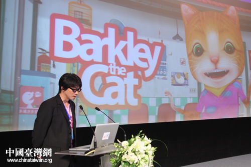 台湾著名动漫导演邱立伟在论坛上作报告。(中国台湾网 黄艳艳 摄)