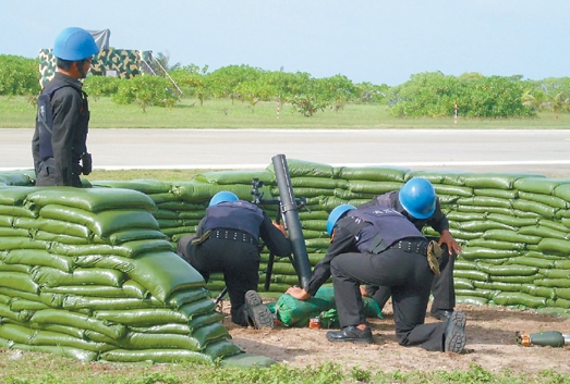 台海巡部队将于9月在南沙太平岛进行火炮射击演习,太平岛台军官兵近日都在进行射击预习,图为台军官兵进行81迫炮射击预习状况。来源:台湾《联合晚报》