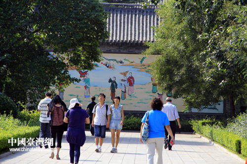 2012年海外台商齐鲁行活动2日上午在山东潍坊继续进行,海外台商参观杨家埠民俗艺术大观园后合影。(中国台湾网 杨丽 摄)