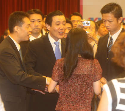 中国台湾网9月6日消息 据台湾媒体报道,台湾地区领导人马英九今出席台湾《中学生报》创刊发表会,并发表讲话。意外的是活动现场一位女粉丝看到马英九太高兴,冲上前去熊抱马英九。(中国台湾网 杜美莹)