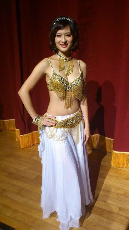 欧孟昀表演肚皮舞,曼妙舞姿吸引观众。(图片来自台媒)