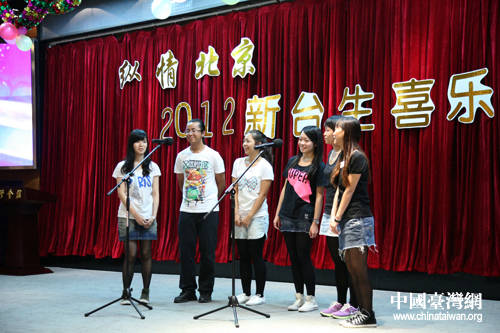 16日下午,“纵情北京·2012新台生喜乐汇”在位于前门附近的台湾会馆举行。来自中国人民大学的台湾学生表演小合唱《暖暖》(中国台湾网 普燕摄)