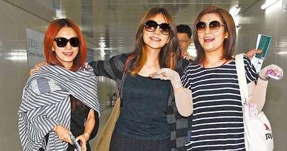 Hebe(左起)、Ella、Selina前晚穿黑色系服装搭机飞往米兰。资料照片来源:台湾媒体