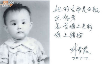 林青霞小时候就有大大的双眼,相当可爱,她并在相片空白处写上“她的生命是白纸,正想着怎么填上色彩,填上缤纷”,并在旁签名注明时间。刘嘉玲的照片相当好认,轮廓和现在相差不大,郭富城的童年照则较不容易认出。(中国台湾网 杜美莹)