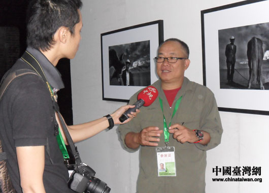 台湾中视记者采访台湾摄影大师林添福先生。(中国台湾网 郭庆娜 摄)