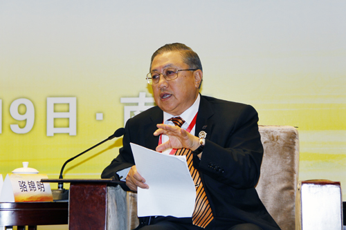 台湾工商协进会理事长、台湾工业银行董事长骆锦明在两岸金融合作专题论坛上进行主题发言。(中国台湾网 于斯文 摄)